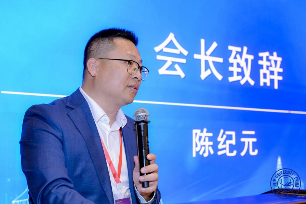 陈纪元会长分享对分会未来发展的规划与期许,表达将凝聚校友情谊、推动体育交流、促进产学研融合、积极服务湾区发展的决心。