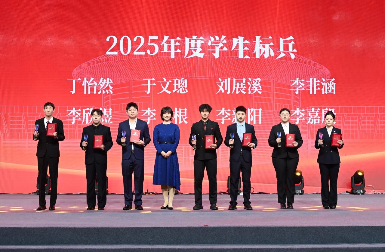 副院长胡光霞和邹晓峰为2025年度学生标兵颁发奖杯及证书。